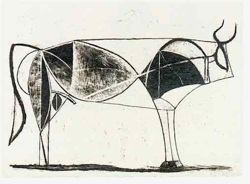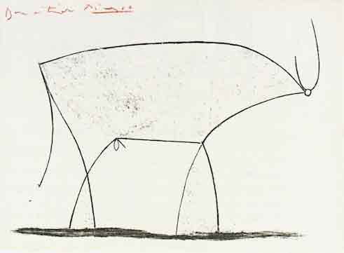 Diese Serie von Picasso ist ein sehr gutes Beispiel um zu demonstrieren, was Abstraktion kann. Das was als "wesentlich" erscheint kann immer neu gesehen werden. 1. Zustand Man kann hier den ikonischen Ursprung deutlich nachvollziehen |
